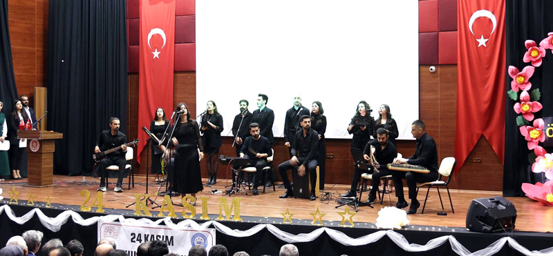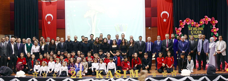 Çelenk sunma töreninin ardından katılımcılar Özcan Yıldız Konferans Salonuna geçerek burada düzenlenen 24 Kasım Öğretmenler Günü münasebetiyle düzenlenen kutlama programına katıldılar.