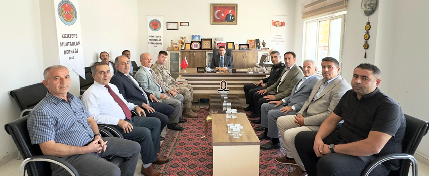 Kızıltepe Muhtarlar Derneği Dernek Başkan vekili Ali Vural ve dernek üyeleri ile Kızıltepe ve Kırsal Mahalle Muhtarları Derneği Dernek Başkanı Aziz Karaaslan ve dernek üyelerinden oluşan birer heyet 19 Ekim Muhtarlar Günü münasebetiyle ilçe Kaymakamı Abdullah Şahin’i ayrı ayrı makamında ziyaret ettiler.