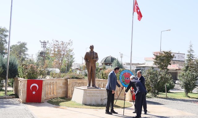 İlçe Kaymakamı Abdullah Şahin, Protokol Üyeleri ve Muhtarların katılımlarıyla gerçekleşen törende Atatürk Anıtına çelenk sunumunun ardından, saygı duruşunda bulunuldu ve akabinde İstiklal Marşımız okundu.