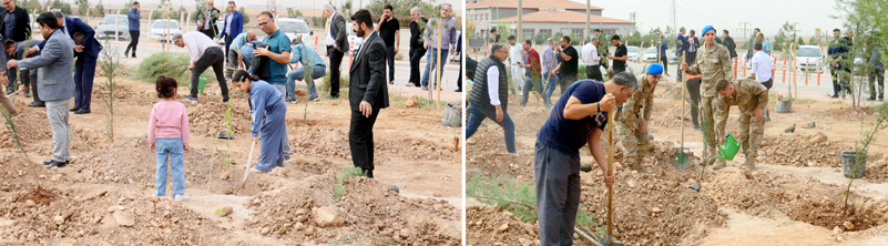11 Kasım Milli Ağaçlandırma Günü dolayısıyla “Yeşil Vatan Seferberliği” temasıyla Kızıltepe Mimar Sinan Mesleki ve Teknik Anadolu Lisesinde düzenlenen fidan dikimi etkinliği programına ilçe Kaymakamı Abdullah Şahin, İlçe Jandarma Komutan V. Sedat Özmen, İlçe Emniyet Müdür V. Onur Sadık Sevindik, İlçe Protokolü, vatandaşlar ve öğretmen ve öğrenciler katıldı.
