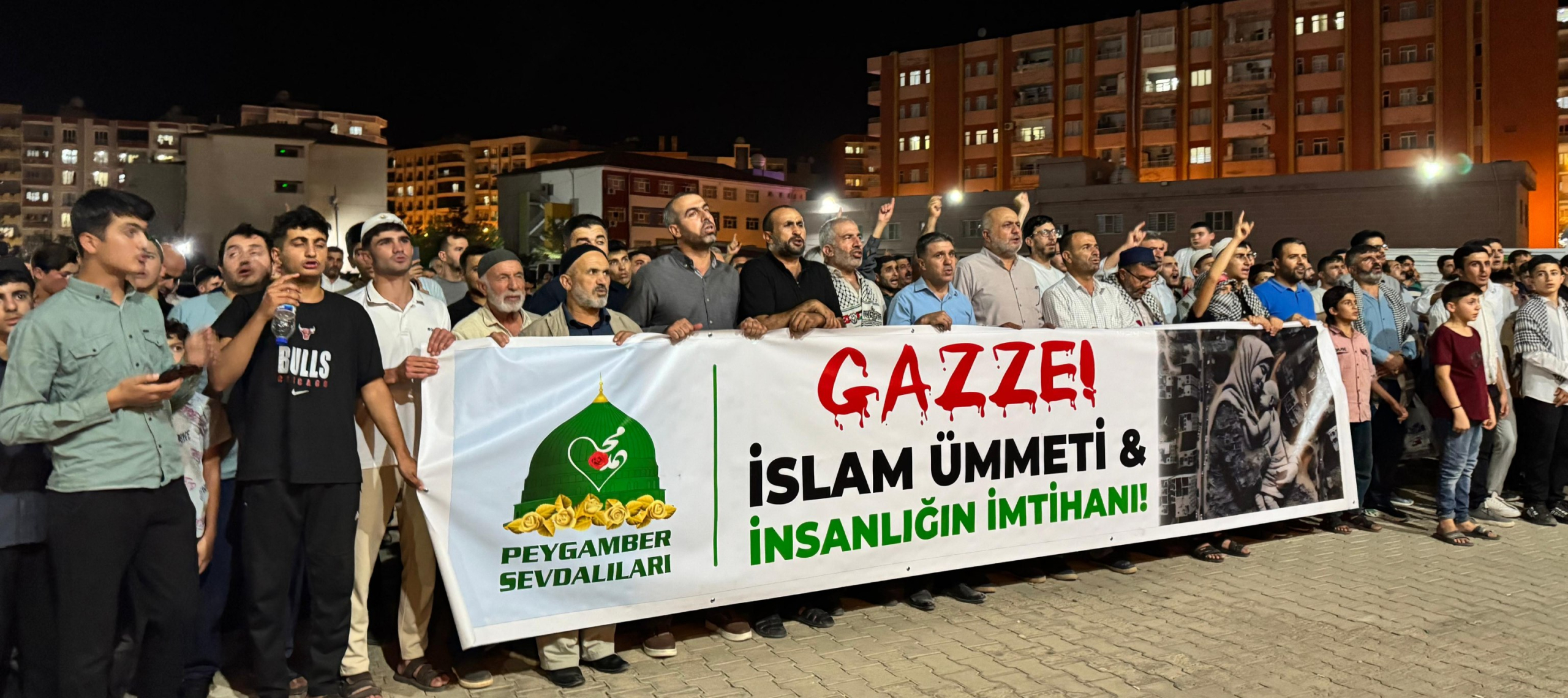 Kızıltepe ilçesindeki dün akşam Peygamber Sevdalıları platformu öncülüğünde düzenlenen etkinliğe katılanlar Cumhuriyet Meydanında toplandıktan sonra tekbir ve sloganlar eşliğinde ilçe otogarına yürüdü.
