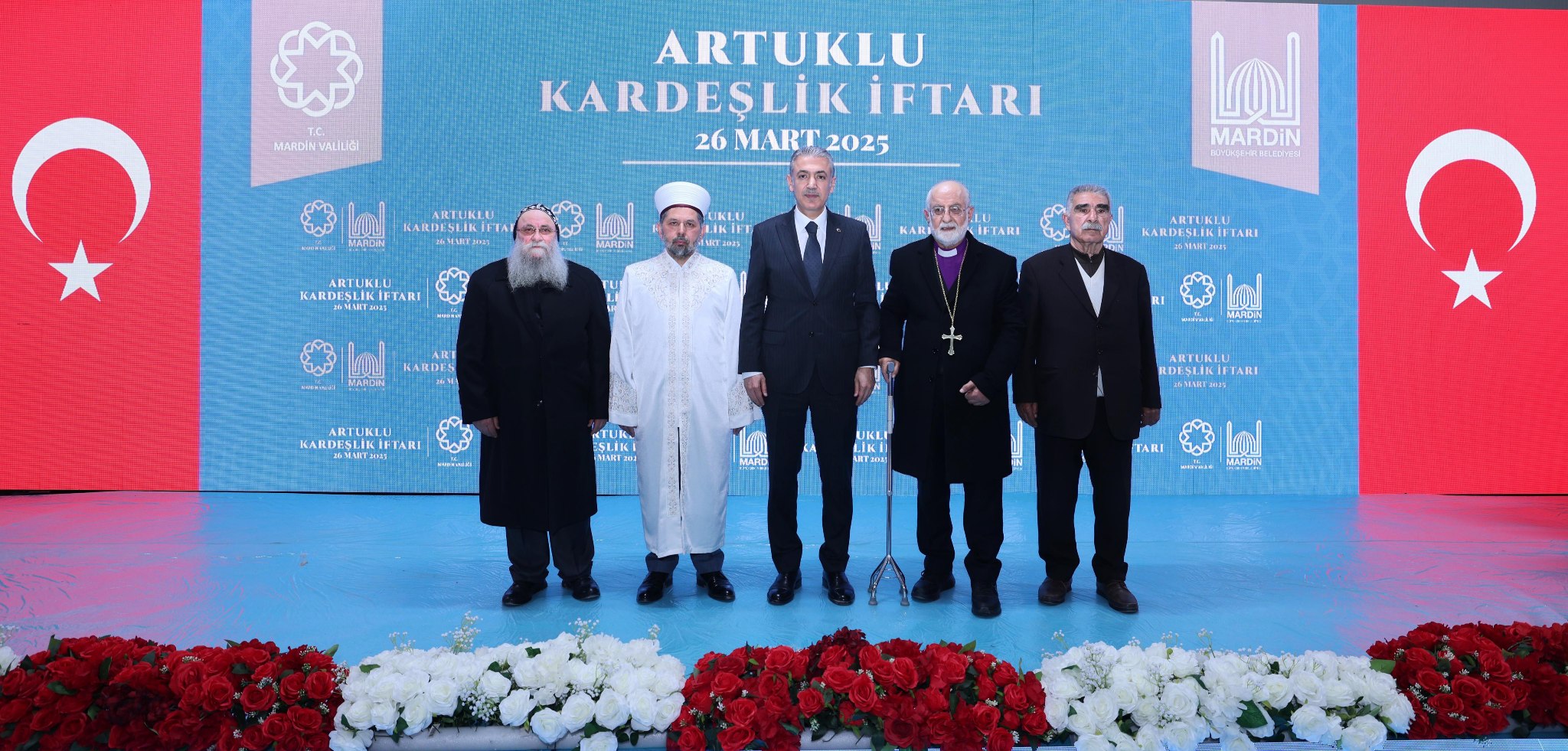 Artuklu Kaymakamı Muhammet Öztabak, Vali Yardımcıları Mehmet Naim Akgül, Hasan Kurt ve Osman Çelikkol, Cumhuriyet Başsavcısı Mustafa Akbulut, İl Jandarma Komutanı Tuğgeneral Tahsin Saruhan, 70. Mekanize Piyade Tugay Komutanı Tuğgeneral Ahmet Yaşar Dener, Mardin Artuklu Üniversitesi Rektörü Prof. Dr. İbrahim Özcoşar, Adalet Komisyonu Başkanı Mehmet Deniz Malkoç, 1. İdare Mahkemesi Başkanı Osman Kaba, İl Emniyet Müdürü Cebrail Buğday, Mardin Büyükşehir Belediyesi Genel Sekreteri Fatih Eroğlu, Aziz Şehitlerimizin Aileleri, Kahraman Gazilerimiz ve Aileleri, Müftü Dr. Enver Türkmen, Kırklar Kilisesi Papazı Gabriel Akyüz, Ezidi Kanaat Önderi Binno Demir, Rahip Gabriel Akkurt, Ermeni, Keldani, Ortodoks ve Katolik Kiliseleri Vakıf Yöneticileri, Kamu Kurum ve Kuruluşları Amirleri, Siyasi Parti Temsilcileri, Sivil Toplum Kuruluşları Yöneticileri ve çok sayıda hemşehrimiz katıldı.
