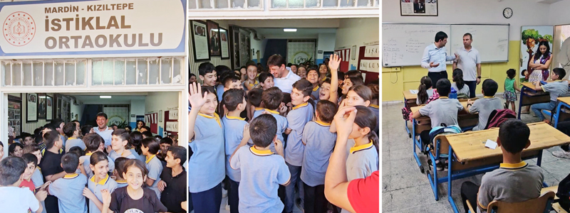Gittiğimiz her il ilçede olduğu gibi burada da Kızıltepe’de, Derik’te gezerken okullara ne yapabiliriz diye bakıyoruz. Devletimiz elinden geleni yapıyor. Biz de imkanlar dahilinde katkı sunmaya yardımcı olmaya çalışıyoruz.” İfadelerini kullanırken okul çocuklarının mutluğu ve heyecanları gözlerinden okunuyordu.