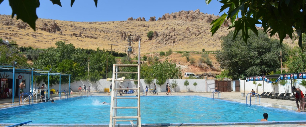 Mardin’in Kızıltepe ilçesinde 45 dereceyi aşan sıcaklardan bunalan vatandaşlar, Ğurs Vadisi’nde kurulan yarı olimpik havuzda yüzerek ağaçlar altında piknik yaparak dinlenerek serinliyor.